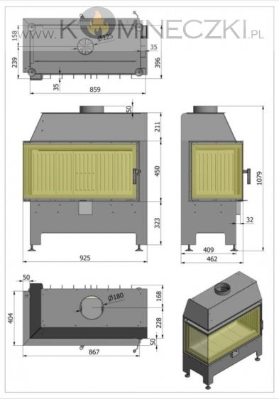 - wylot spalin fi-180 mm – kompatybilny z większością kominów