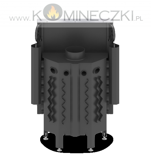 - Specjalnie zaprojektowana tylna część korpusu umożliwia doprowadzenie powietrza wtórnego do górnej części paleniska. Umożliwia podniesienie sprawności urządzenia poprzez dopalanie spalin.