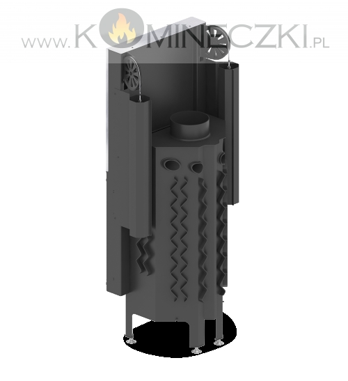 - Specjalnie zaprojektowana tylna część korpusu umożliwia doprowadzenie powietrza wtórnego do górnej części paleniska. Umożliwia podniesienie sprawności urządzenia poprzez dopalanie spalin.