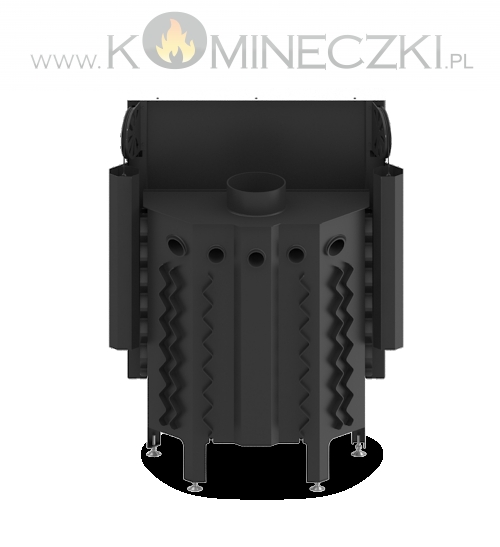 - Specjalnie zaprojektowana tylna część korpusu umożliwia doprowadzenie powietrza wtórnego do górnej części paleniska. Umożliwia podniesienie sprawności urządzenia poprzez dopalanie spalin.