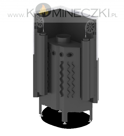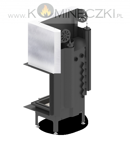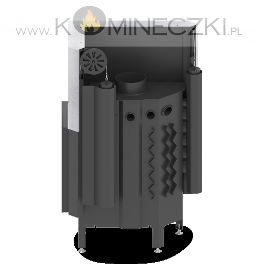 • Specjalnie zaprojektowana tylna część korpusu umożliwia doprowadzenie powietrza wtórnego do górnej części paleniska. Umożliwia podniesienie sprawności urządzenia poprzez dopalanie spalin.