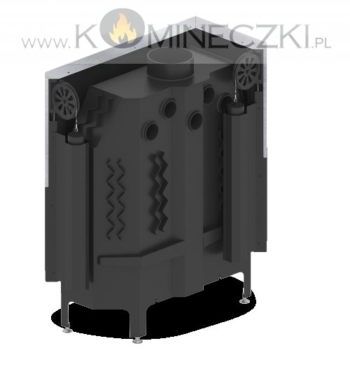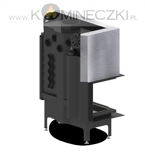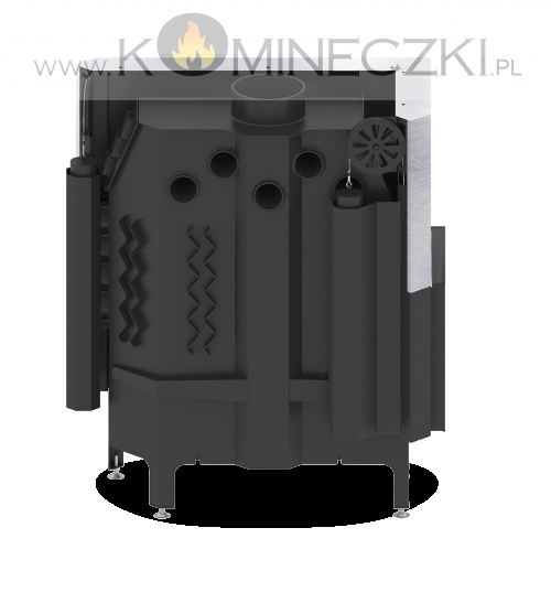 - Specjalnie zaprojektowana tylna część korpusu umożliwia doprowadzenie powietrza wtórnego do górnej części paleniska. Umożliwia podniesienie sprawności urządzenia poprzez dopalanie spalin.