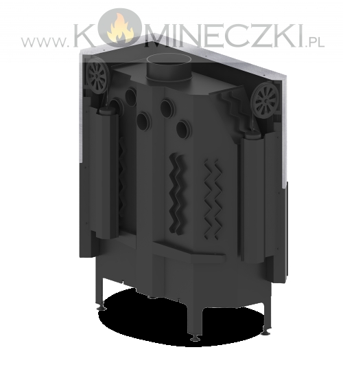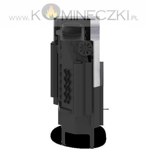 - Specjalnie zaprojektowana tylna część korpusu umożliwia doprowadzenie powietrza wtórnego do górnej części paleniska. Umożliwia podniesienie sprawności urządzenia poprzez dopalanie spalin.