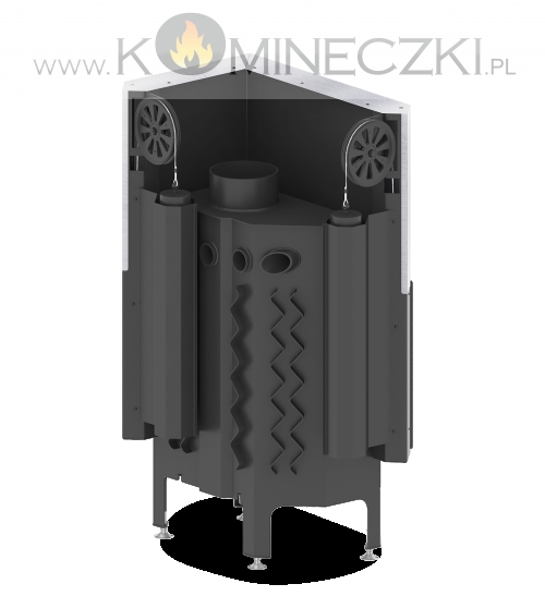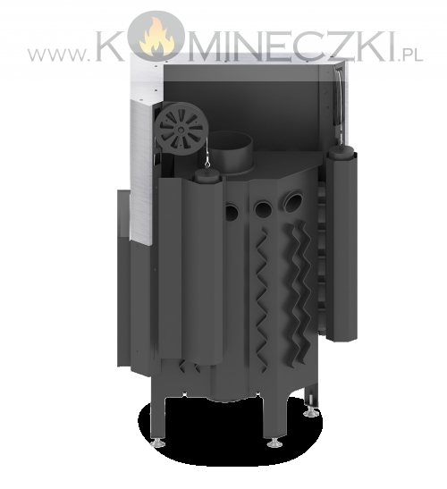 - Specjalnie zaprojektowana tylna część korpusu umożliwia doprowadzenie powietrza wtórnego do górnej części paleniska. Umożliwia podniesienie sprawności urządzenia poprzez dopalanie spalin.