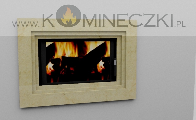 Obudowa kominka przedstawionego na zdjęciu wykonana jest z marmur Crema Marfil.