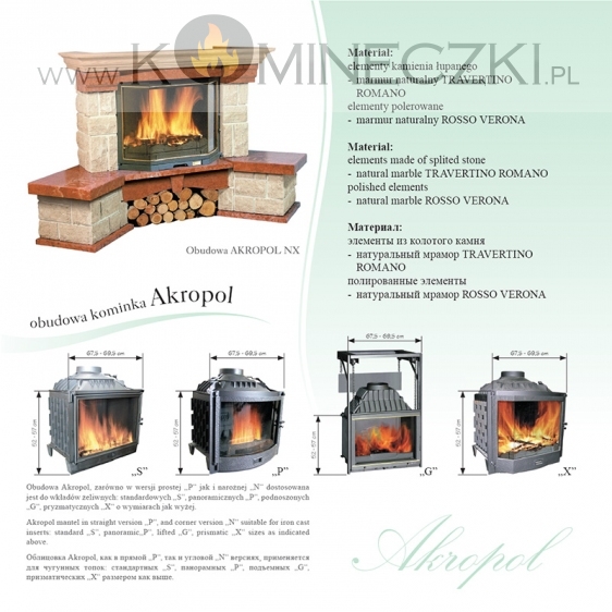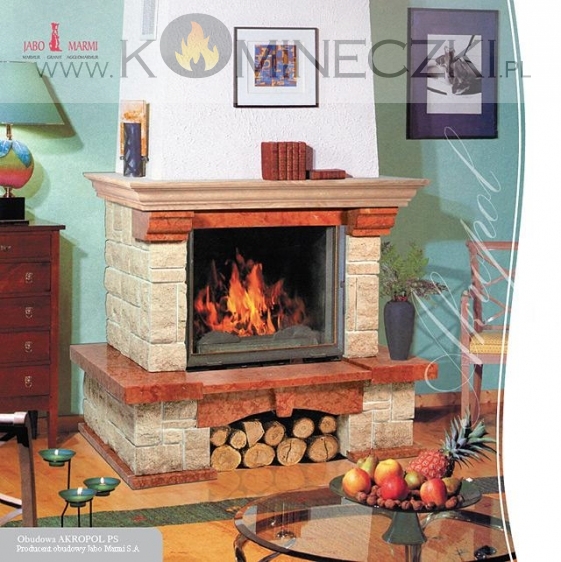 - obudowę kominka wykonaną z naturalnego marmuru oraz łupanego pisakowca.