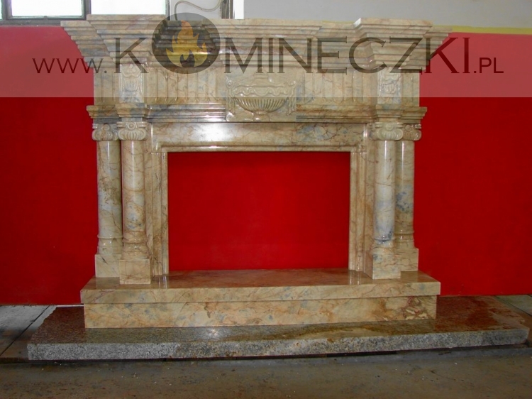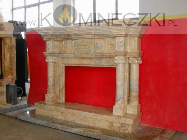 Obudowa kominka przedstawionego na zdjęciu wykonana jest z kamienia naturalnego.