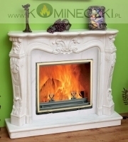 Obudowa kominka przedstawionego na zdjęciu wykonana jest z naturalnego marmuru Carrara Light lub Antique Egypt.