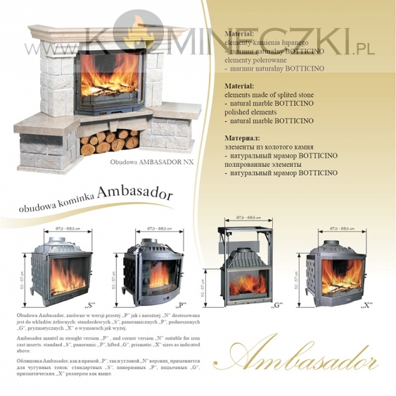 - obudowę kominka wykonaną z naturalnego marmuru oraz łupanego pisakowca.
