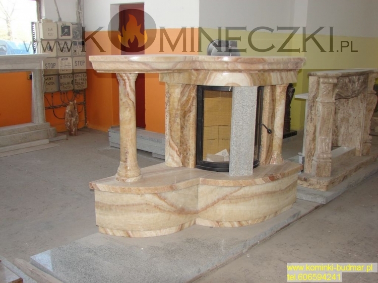 Obudowa kominka przedstawionego na zdjęciu wykonana jest z kamienia naturalnego.