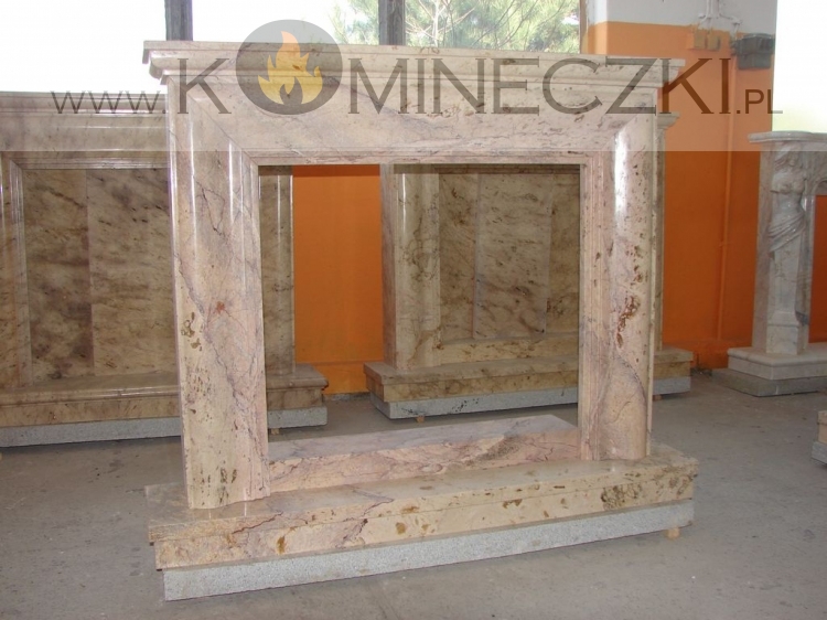 Obudowa kominka przedstawionego na zdjęciu wykonana jest z kamienia naturalnego.