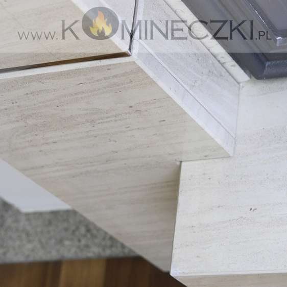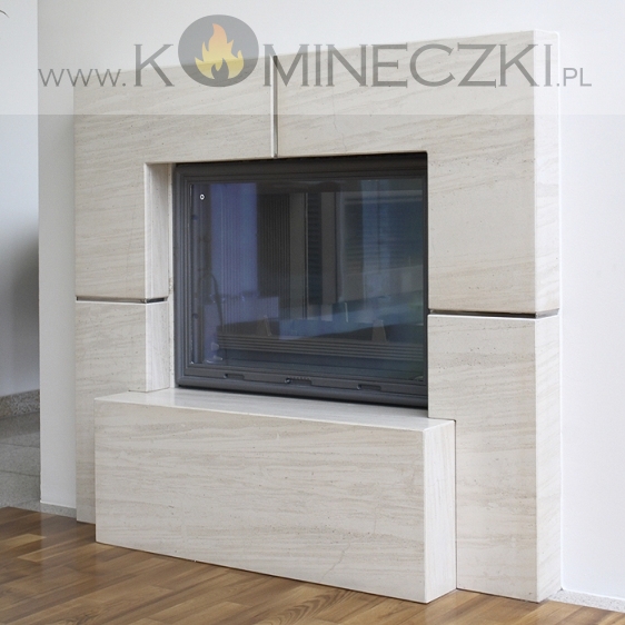 Obudowa przedstawiona na zdjęciu wykonana została z kamienia naturalnego Peonia. Do fasady zastosowano listwy z polerowaniej stali szlachetnej.