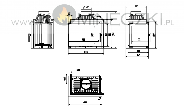 - wkład kominkowy firmy Kratki SMART M/S 8 BS lewy lub prawy - do wyboru