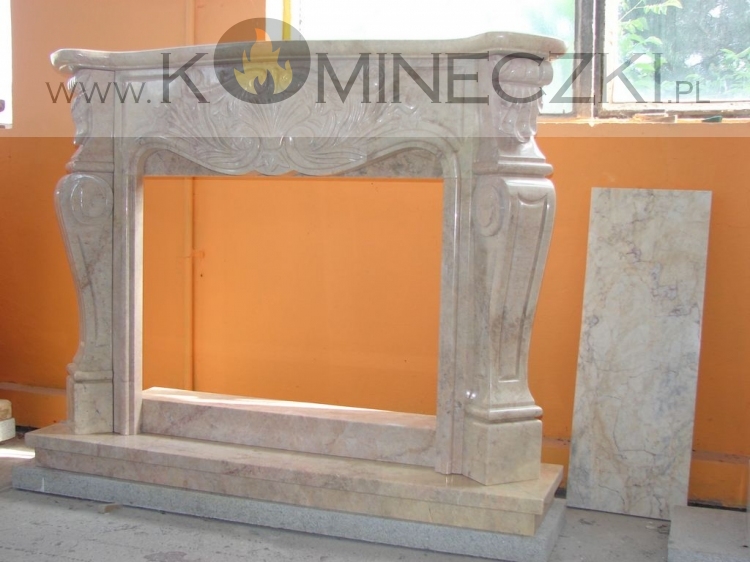 Obudowa kominka przedstawionego na zdjęciu wykonana jest z kamienia naturalnego.