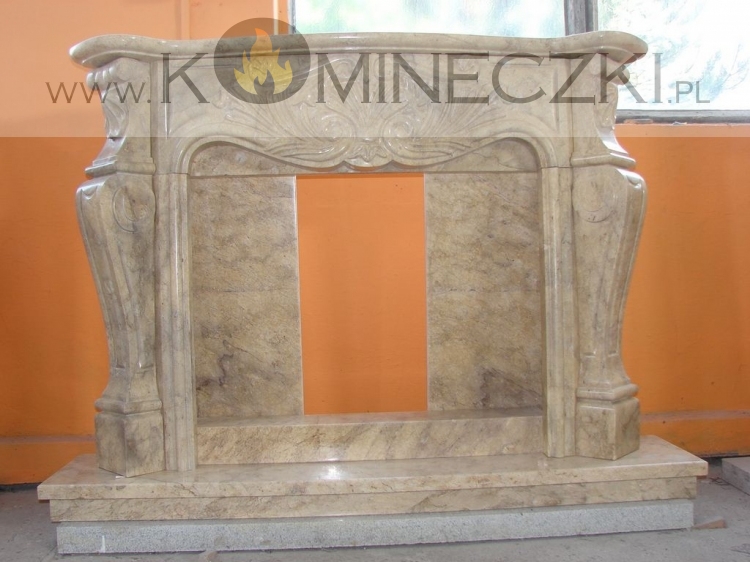 Obudowa kominka przedstawionego na zdjęciu wykonana jest z kamienia naturalnego.