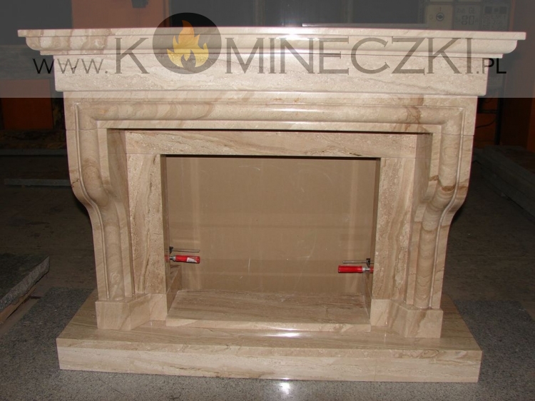 Obudowa kominka przedstawionego na zdjęciu wykonana jest z kamienia naturalnego.