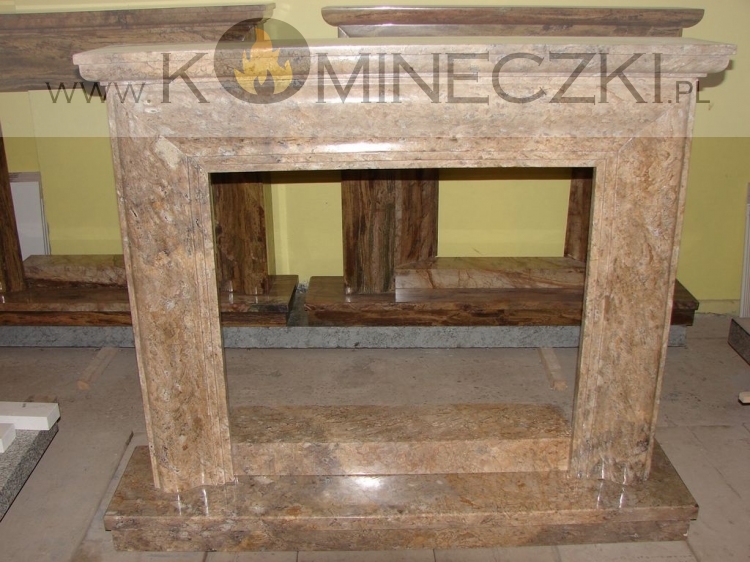 Obudowa kominka przedstawionego na zdjęciu wykonana jest z kamienia naturalnego.