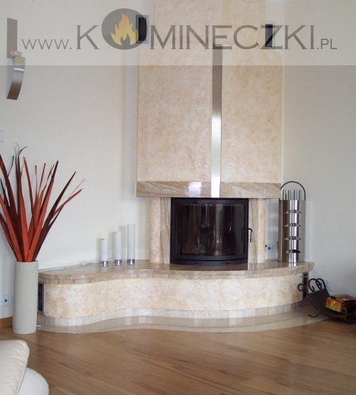 Kominek  Ermes  w wersji prostej jak i narożnej dostosowany jest do wkładów z szybą prostą, panoramiczną oraz
