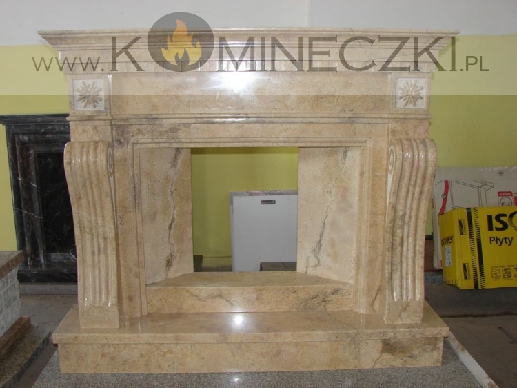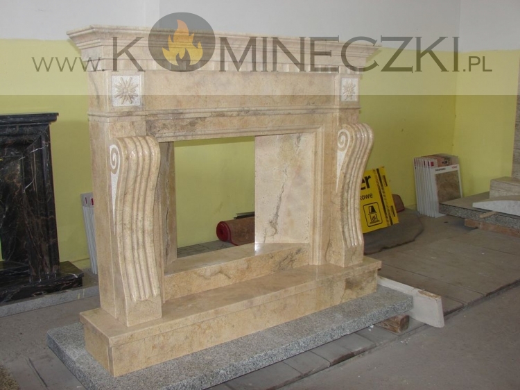 Obudowa kominka przedstawionego na zdjęciu wykonana jest z kamienia naturalnego.