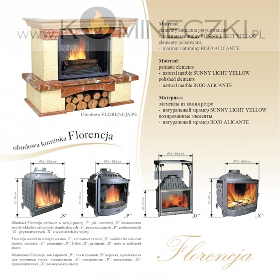 - obudowę kominka wykonaną z naturalnego marmuru
