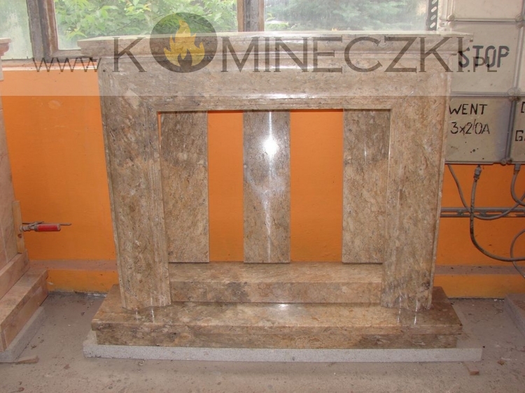 Obudowa kominka przedstawionego na zdjęciu wykonana jest z kamienia naturalnego.