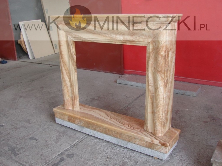 Obudowa kominka przedstawionego na zdjęciu wykonana jest z kamienia naturalnego.