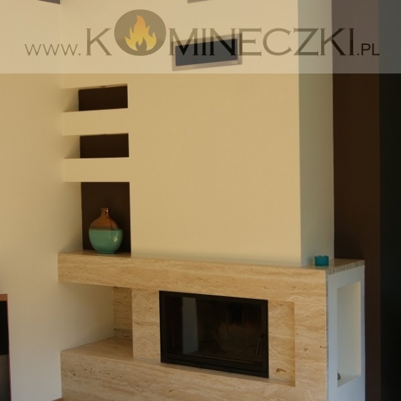 Obudowę kominka przedstawioną na zdjęciu wykonano z marmuru Caffe Latte.