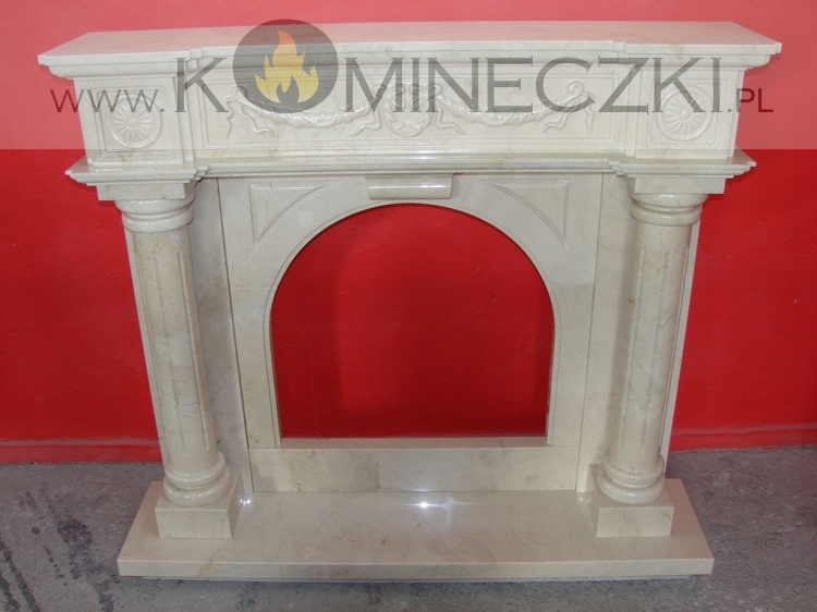Obudowa kominka przedstawionego na zdjęciu wykonana jest z kamienia naturalnego.