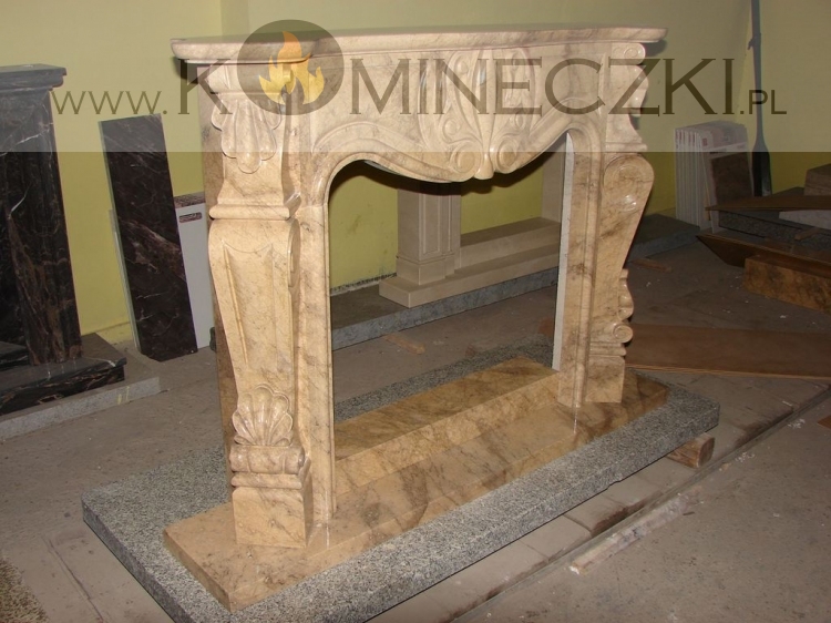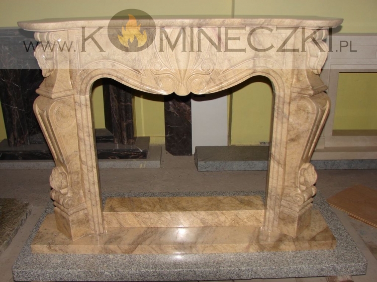 Obudowa kominka przedstawionego na zdjęciu wykonana jest z kamienia naturalnego.
