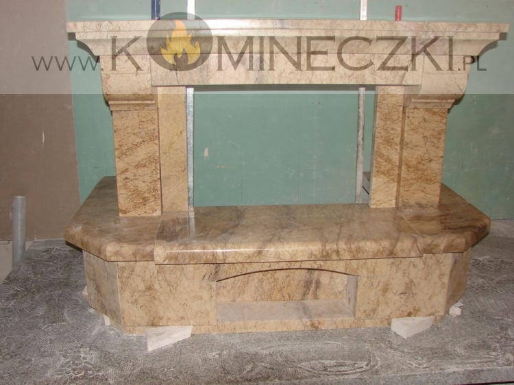 Obudowa kominka przedstawionego na zdjęciu wykonana jest z kamienia naturalnego.