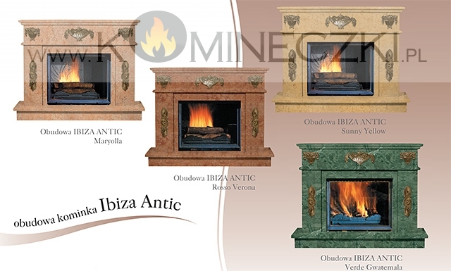 Obudowa kominka Ibiza Antic dostępna jest w czterech kolorach: