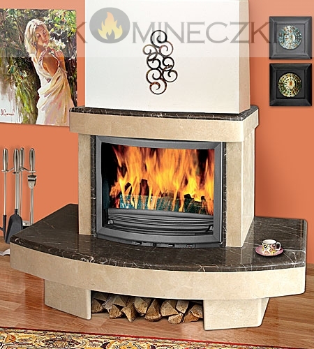 Kominek  Ikaria w wersji prostej jak i narożnej dostosowany jest do wkładów z szybą prostą, panoramiczną oraz