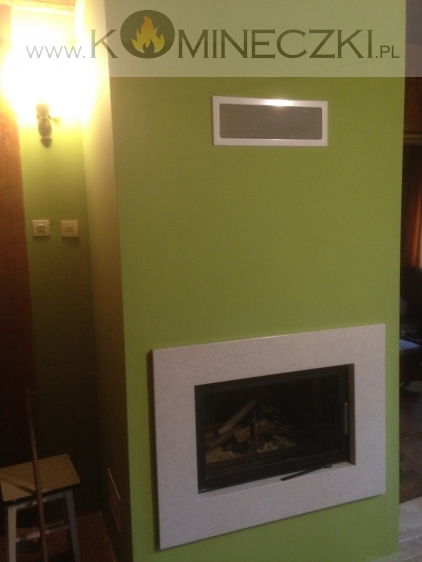 Czołowa rama kominka przedstawionego na zdjęciu  wykonana została  z polerowanego granitu Nero Assoluto.