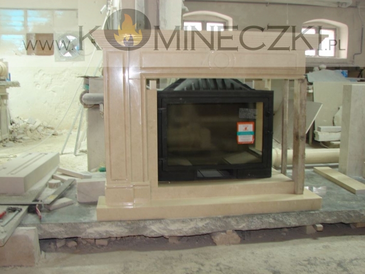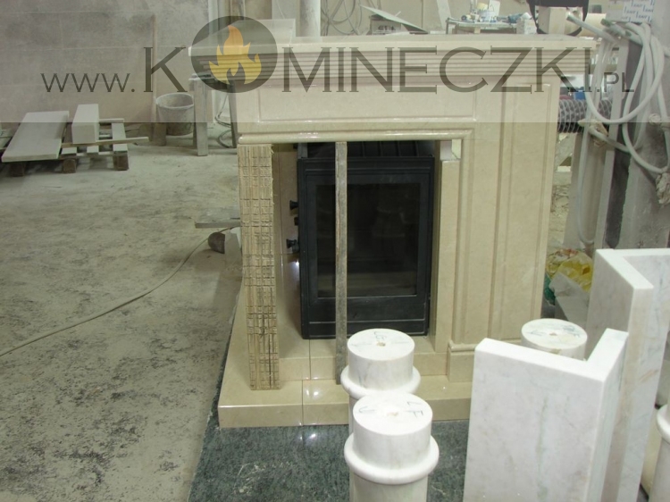 Obudowa kominka przedstawionego na zdjęciu wykonana jest z kamienia naturalnego.