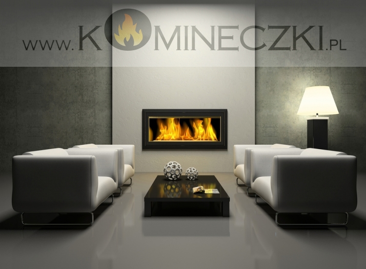 Kominek z dekoracyjną blendą (ramką) wokół wkładu. Istnieje możliwość wykonania kominka o dowolnych wymiarach.