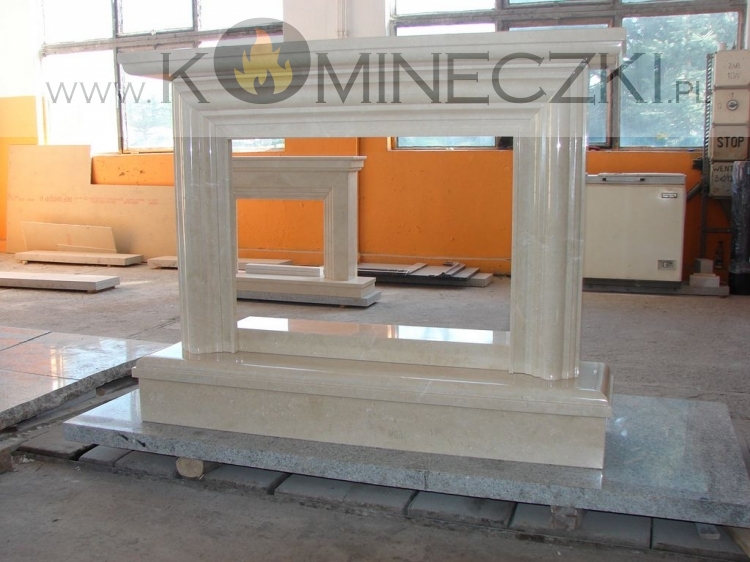 Obudowa kominka przedstawionego na zdjęciu wykonana jest z kamienia naturalnego.