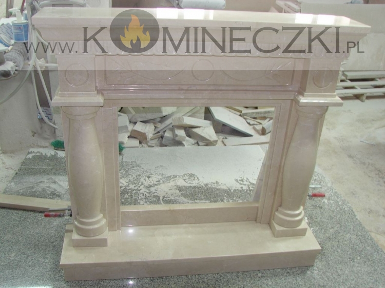 Obudowa kominka przedstawionego na zdjęciu wykonana jest z kamienia naturalnego.