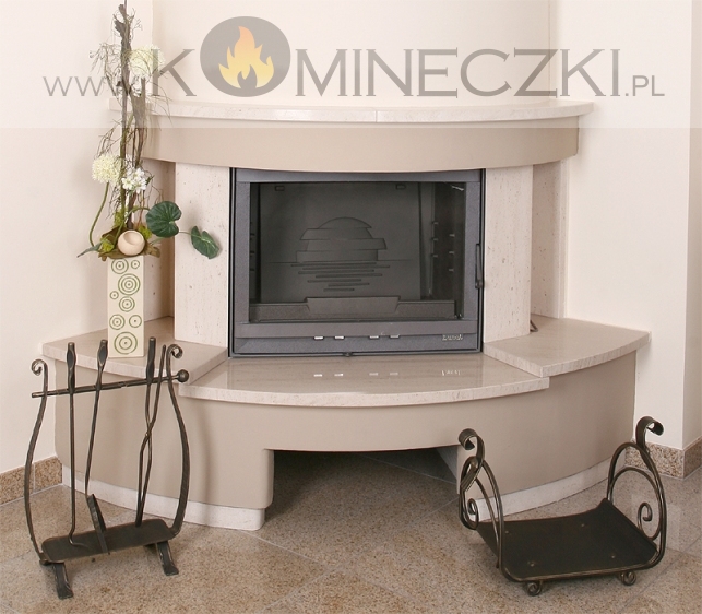 Kominek, przedstawiony na zdjęciu, wykonano z polerowanego kamienia Capucino.