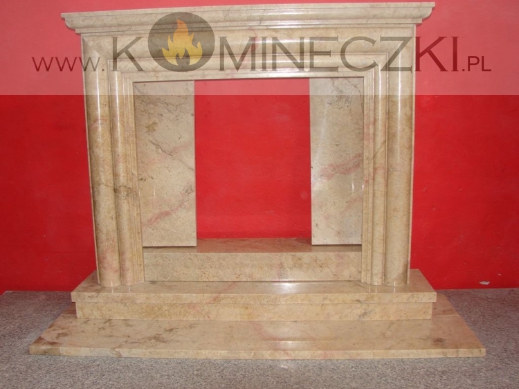 Obudowa kominka przedstawionego na zdjęciu wykonana jest z kamienia naturalnego.