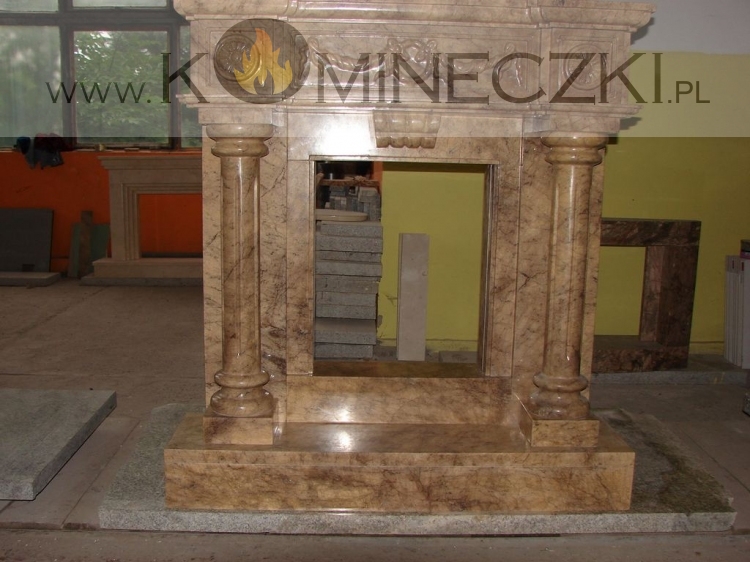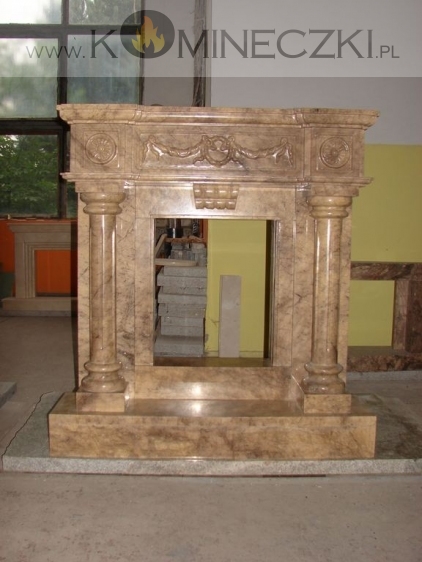 Obudowa kominka przedstawionego na zdjęciu wykonana jest z kamienia naturalnego.