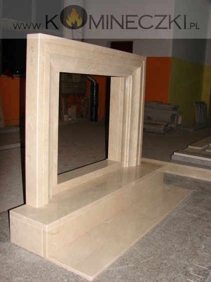 Obudowa kominka przedstawionego na zdjęciu wykonana jest z kamienia naturalnego.