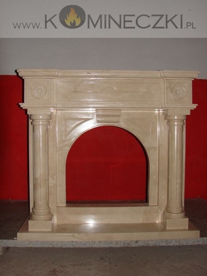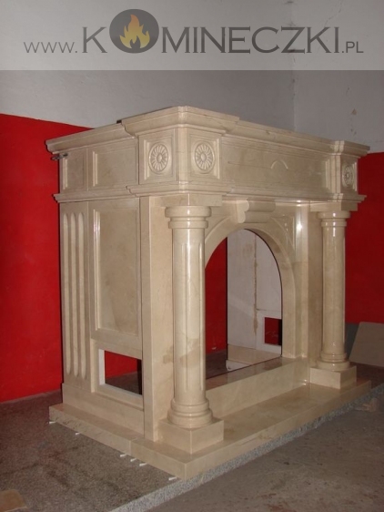 Obudowa kominka przedstawionego na zdjęciu wykonana jest z kamienia naturalnego.