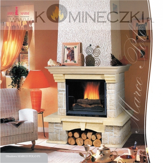 - obudowę kominka wykonaną z naturalnego marmuru oraz łupanego pisakowca.