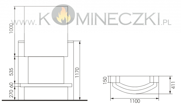 Kominek  Maver w wersji prostej jak i narożnej dostosowany jest do wkładów z szybą prostą, panoramiczną oraz