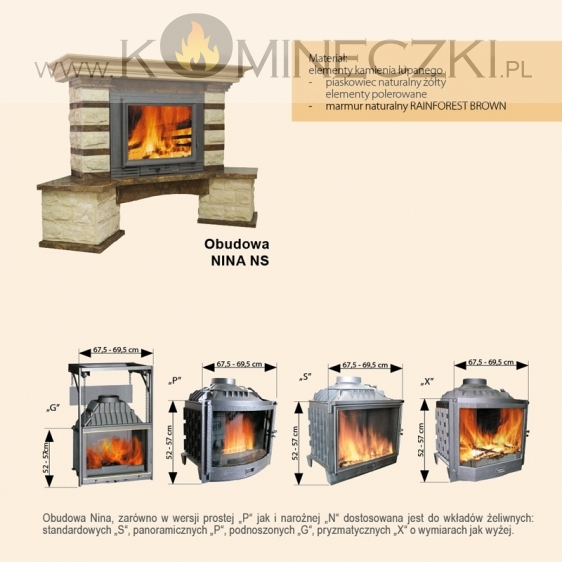 Kominek  Nina w wersji prostej jak i narożnej dostosowany jest do wkładów z szybą prostą, panoramiczną oraz