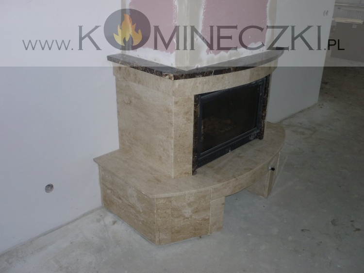 Obudowa kominka Olimpia Emperador prezentowana na zdjęciu wykonana została z kamienia maremma oraz emperador dark