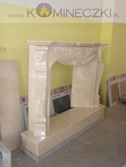 Obudowa kominka przedstawionego na zdjęciu wykonana jest z kamienia naturalnego.