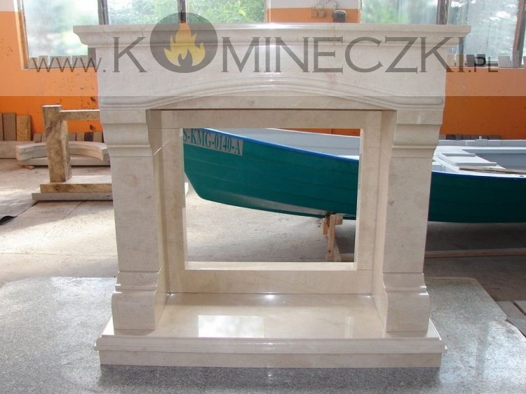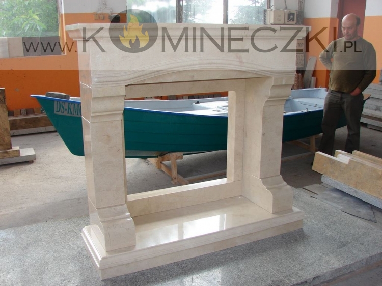 Obudowa kominka przedstawionego na zdjęciu wykonana jest z marmuru Breccia Sarda.