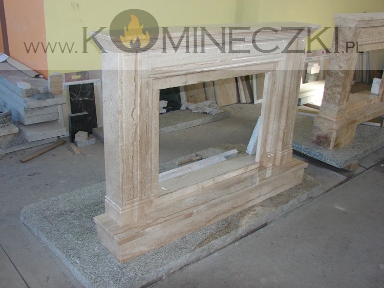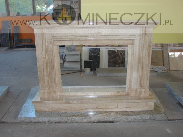 Obudowa kominka przedstawionego na zdjęciu wykonana jest z kamienia naturalnego.