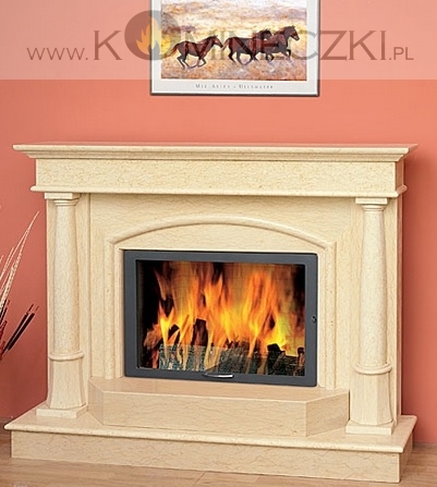 Obudowa kominka przedstawionego na zdjęciu wykonana jest z marmuru Giallo.